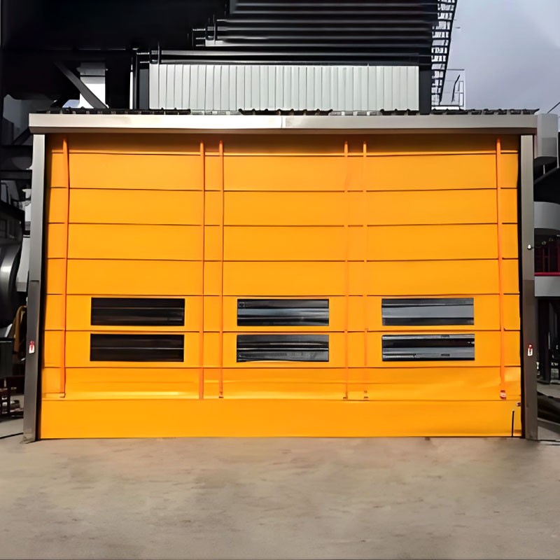 4.jpgPVC high-speed folding doors are a type of industrial doors that can be opened and closed efficiently and quickly. They consist of multiple lightweight, high-strength, and wear-resistant curtain fabrics or hard material panel door panels (usually made of PVC, aluminum, or steel materials). Driven by motors, they can be quickly rolled up or unfolded within the tracks above or on the side of the door frame, achieving the purpose of rapid folding, opening, and closing. They are mainly used in places that require frequent access and have requirements for space partitioning.