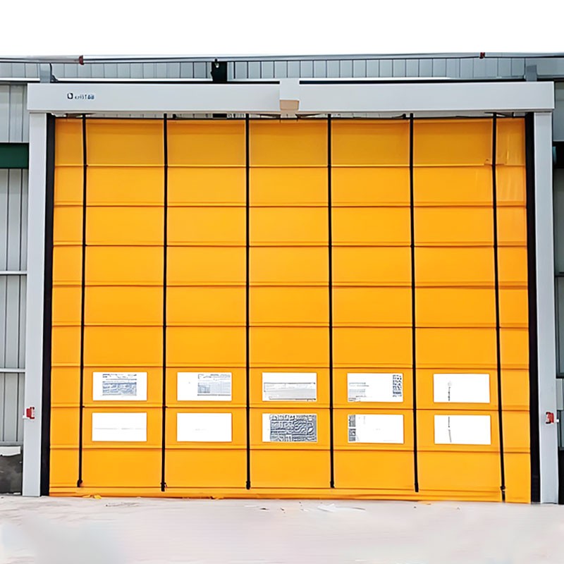 PVC high-speed folding doors are a type of industrial doors that can be opened and closed efficiently and quickly. They consist of multiple lightweight, high-strength, and wear-resistant curtain fabrics or hard material panel door panels (usually made of PVC, aluminum, or steel materials). Driven by motors, they can be quickly rolled up or unfolded within the tracks above or on the side of the door frame, achieving the purpose of rapid folding, opening, and closing. They are mainly used in places that require frequent access and have requirements for space partitioning.